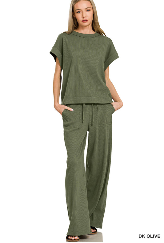 Tummy Control High Rise Wide Leg Adjustable Waist - Light