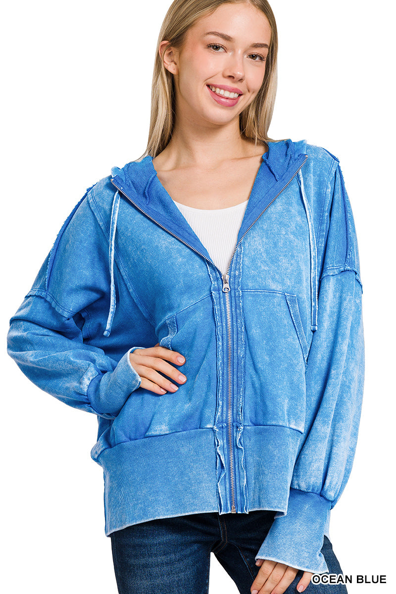 Acid Washed Zip-up Hoodie