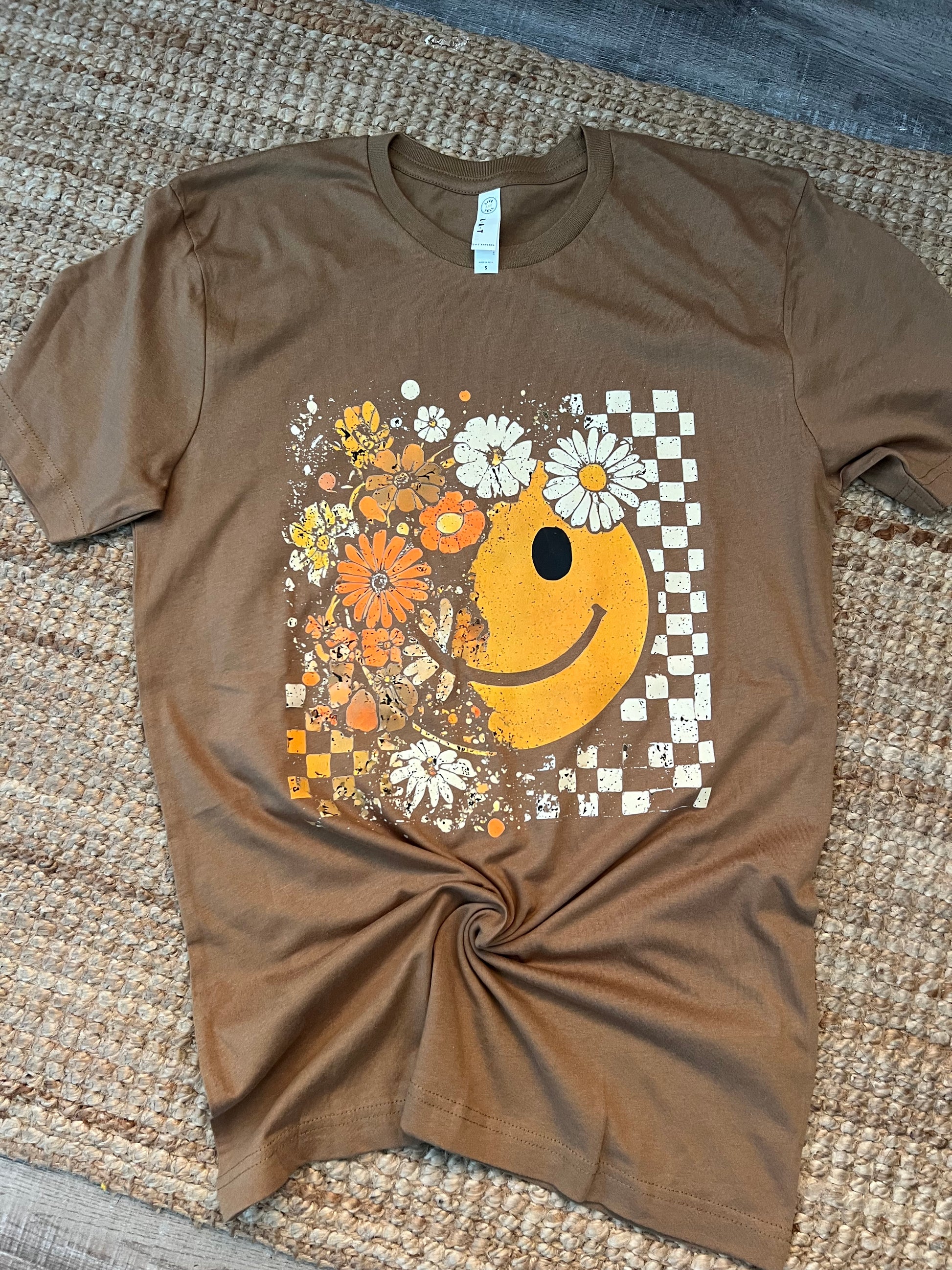 This tee will definitely bring a smile to your face with its checkered floral design. Perfect for those who don't take themselves too seriously, this shirt is a playful addition to any wardrobe. Keep it quirky with the Checkered Smile Tee!