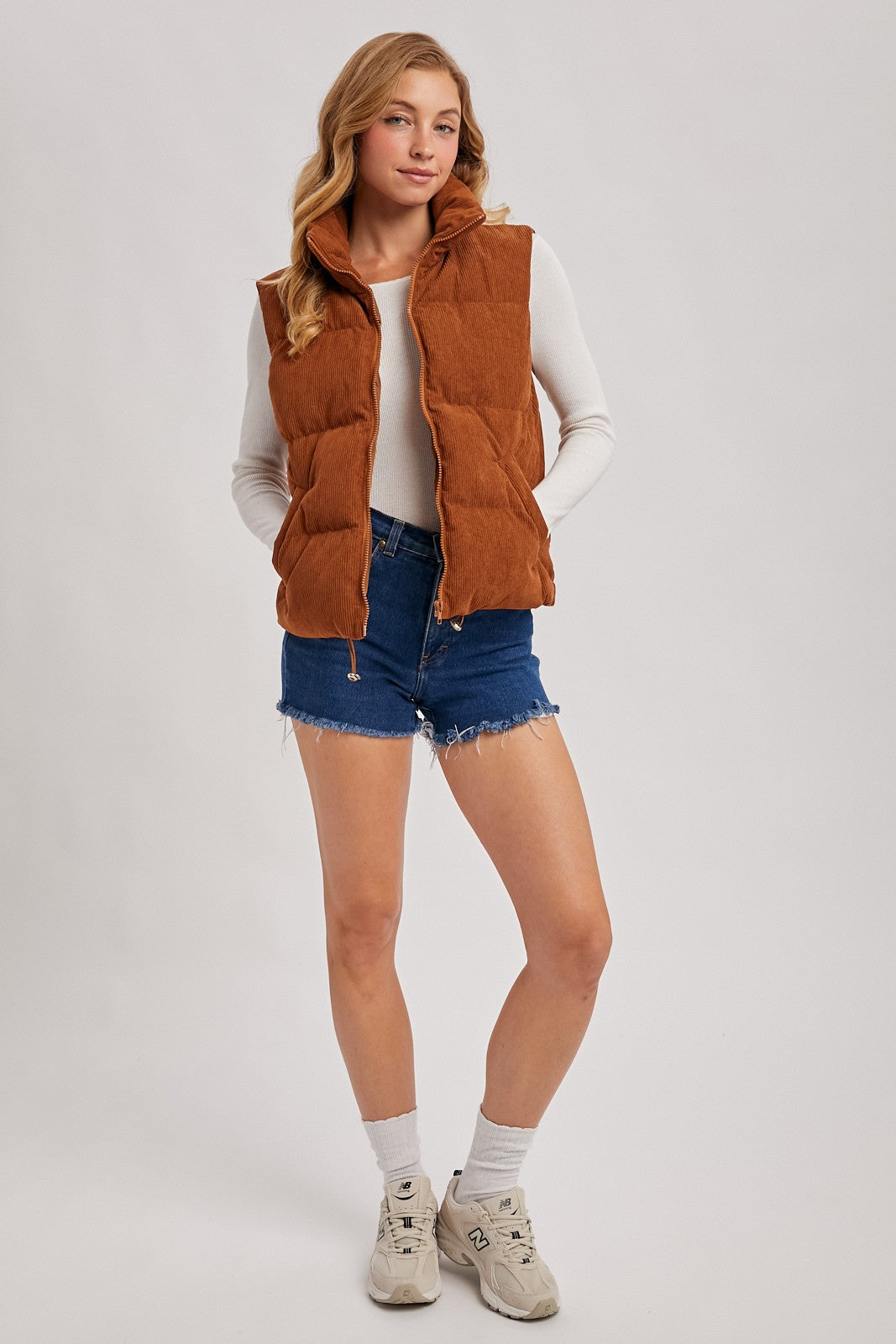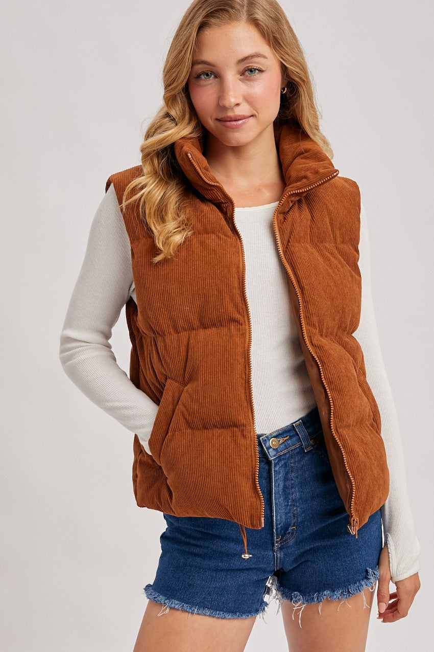 Stay cozy and cool with this Corduroy Puffer Vest! Its soft, quilted corduroy texture adds a fun twist to any outfit, while the zipper front keeps things easy and practical. Sleeveless for perfect layering, it’s your go-to for adding just the right amount of warmth without weighing you down. Ready to cuddle up in style? This vest’s got you covered!