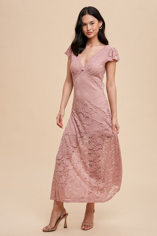 Slip into this stunning dusty rose Open Back Lace Bodycon Dress for your bridal shower or special occasion! The plunging V-neck and flirty bubbled cap sleeves create a playful silhouette, while scalloped lace edges add delicate charm. The showstopper? A flirtatious open back with cute button details! Lined for comfort and crafted with a touch of stretch for that perfect fit. Get ready to turn heads!