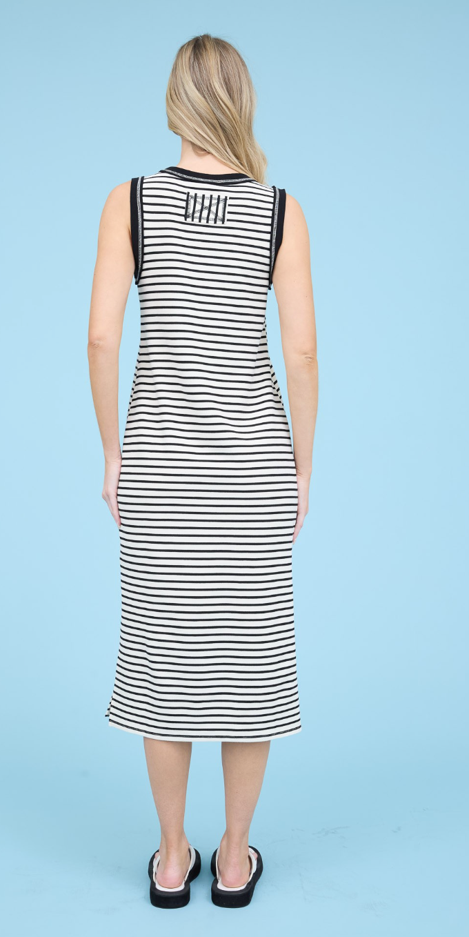 Stripe Sleeveless Side Slit Tank Maxi Dress
