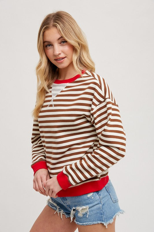 Striped Contrast Crewnek Sweatshirt