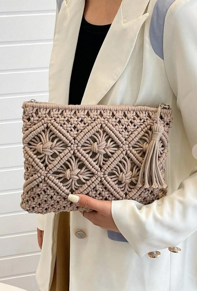 Add a splash of boho charm to your outfit with this Woven Bohemian Tassel Crochet Shoulder Bag. Its intricate crochet design and playful tassels bring a carefree vibe, perfect for sunny days and weekend adventures. Lightweight and roomy enough for your essentials, it’s your new go-to for effortless style with a fun twist.